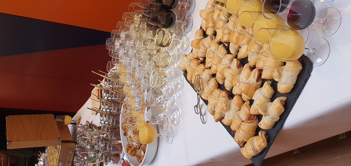 Im Anschluss durften alle klassenweise über den roten Teppich auf die Bühne schreiten und ihr Diplom und eine Rose abholen. Während der Feier begleiteten uns erneut Costi Topalidis mit seinen Musikern mit toller Musik. Nachdem alle ihre Diplome in den Händen hielten gab es dann endlich auch etwas zu Trinken und zu Essen. Endlich konnte auf den Abschluss angestossen werden.