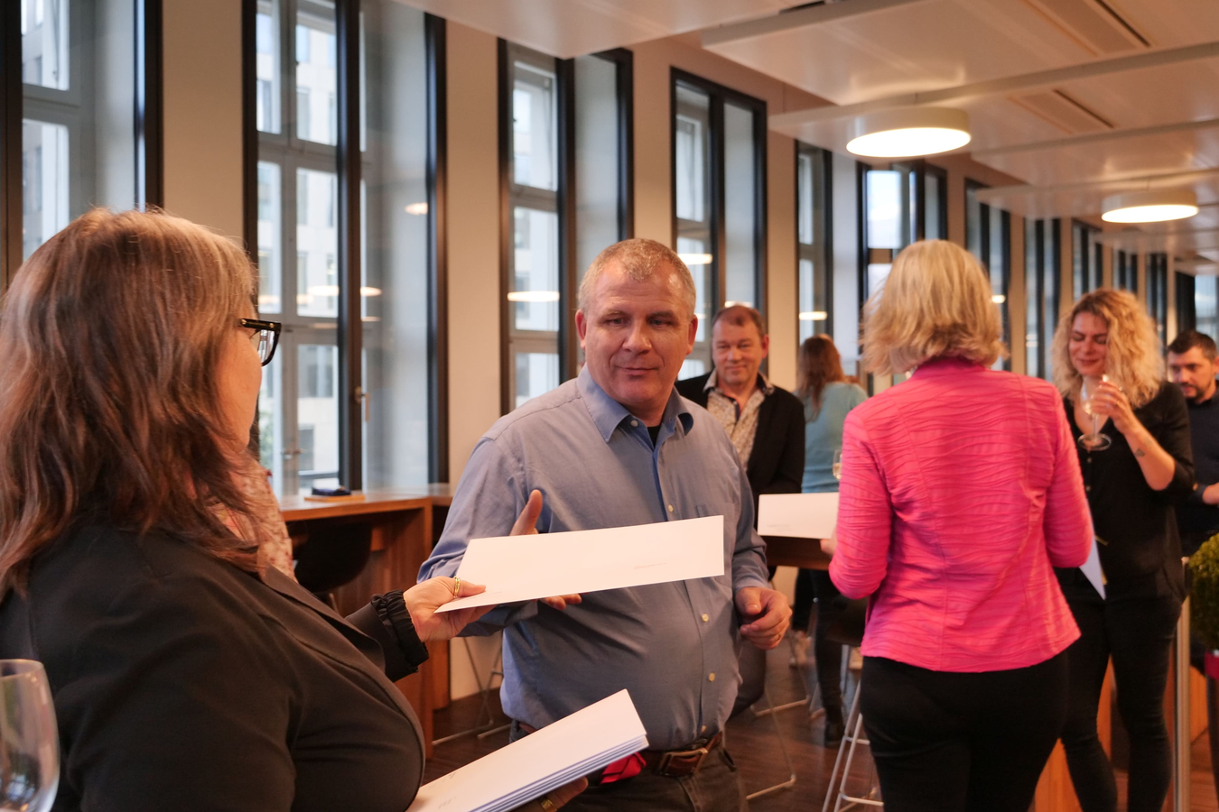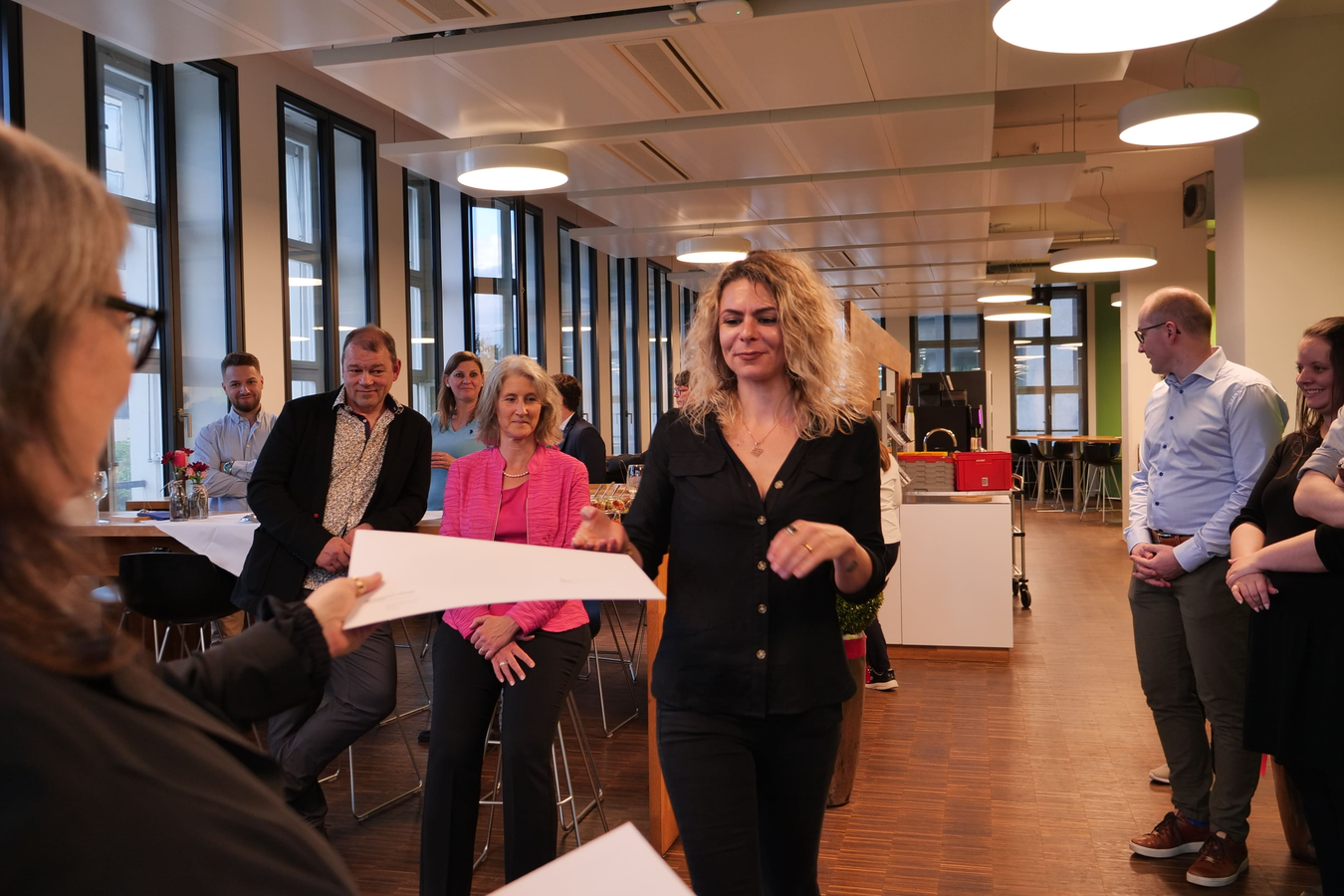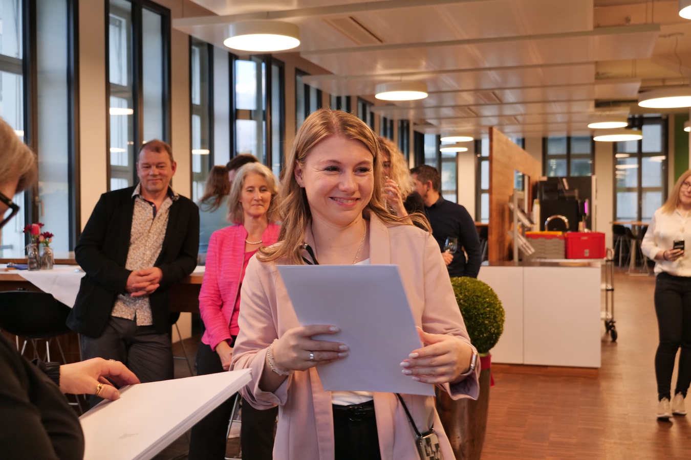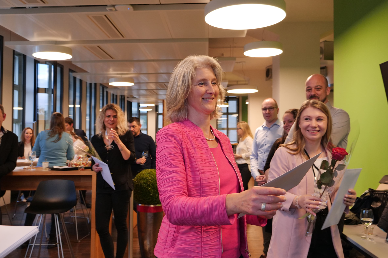 Die Lehrgangsleiterin Beatrix Bock gratulierte allen erfolgreichen Absolventinnen und Absolventen zu ihrem Abschluss. Eine Erfolgsquote von 75 % ist eine starke Leistung! Grund genug, um auf den Erfolg anzustossen.