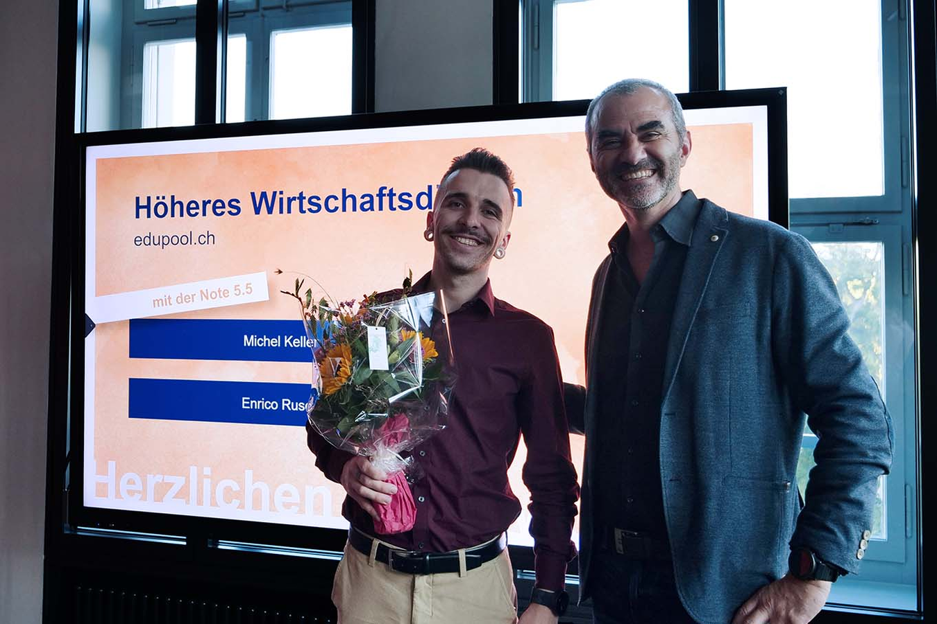 Die Lehrgänge HWD und Handelsschule, mit dem Schweizweit anerkannten edupool.ch-Diplom, sind der ideale Einstieg in den kaufmännischen Bereich. Sie bilden die Basis, um darauf aufzubauen. Welche Fachrichtung es sein soll, liegt ganz bei den Absolventinnen und Absolventen. Wir würden uns freuen, wenn wir alle nach dem HWD und der Handelsschule auch auf dem weiteren Bildungsweg begleiten dürften.