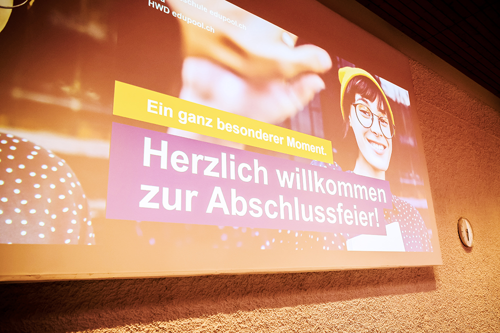 Judith Wespi, Mitglied der Geschäftsleitung, hiess alle Gäste herzlich Willkommen, um diesen speziellen Moment zu feiern. Mit den Abschlüssen Handelsschule und HWD wird der Grundstein für die Karriere im kaufmännischen Bereich gelegt. Sie alle haben den ersten Schritt geschafft. Und wie wars? Mit einem lustigen online Quiz liess sie die Studienzeit der Absolventinnen und Absolventen nochmals Revue passieren. Auch der Geschäftsführer von edupool.ch, Daniel H. Friederich., gratulierte den ehemaligen Studierenden zu ihrem erfolgreichen Abschluss. Er freute sich sehr, als Festredner an der Abschlussfeier dabei zu sein. Und dann war es soweit: der rote Teppich-Moment war gekommen!