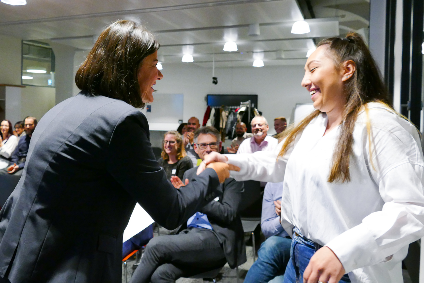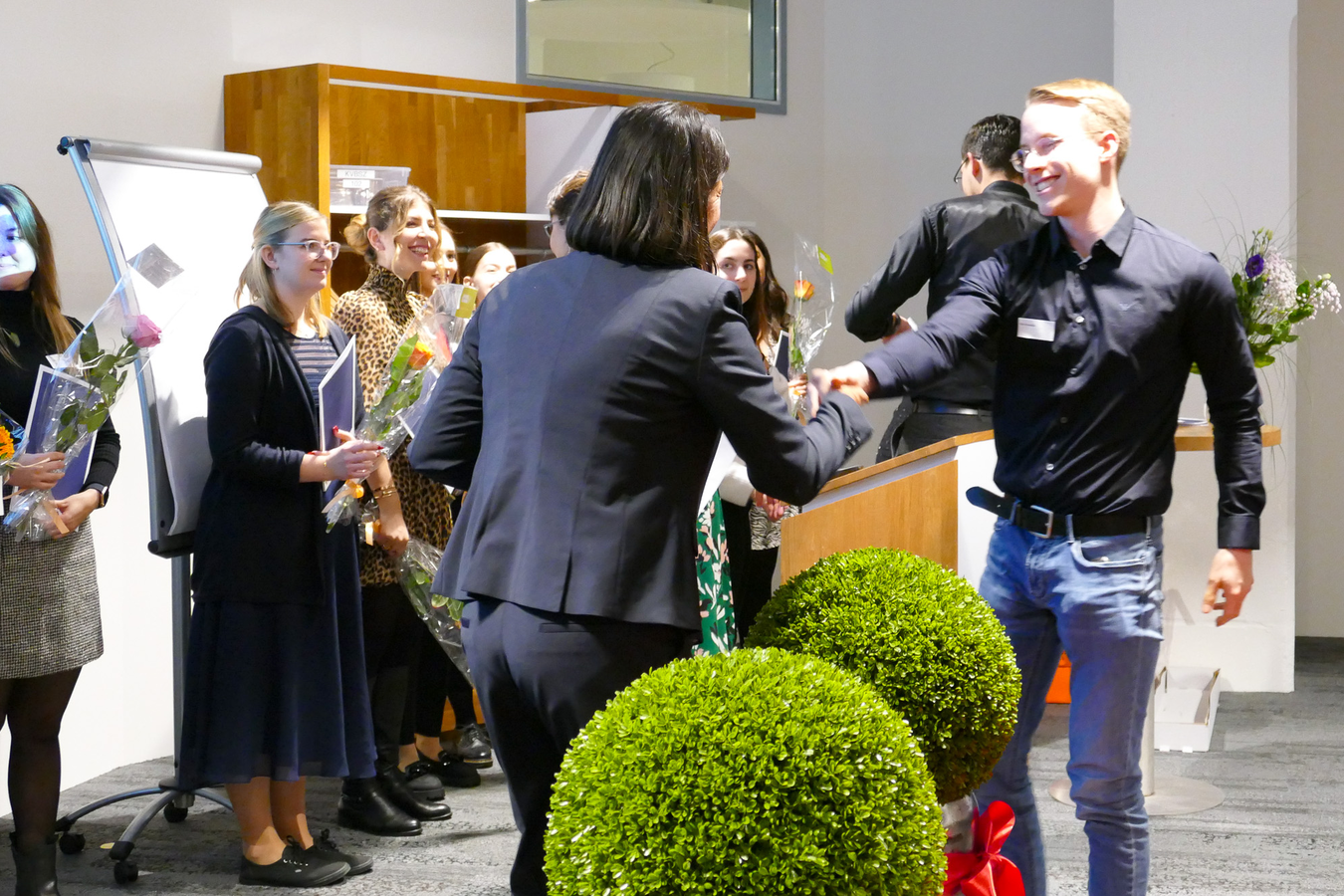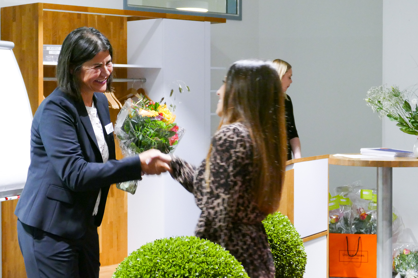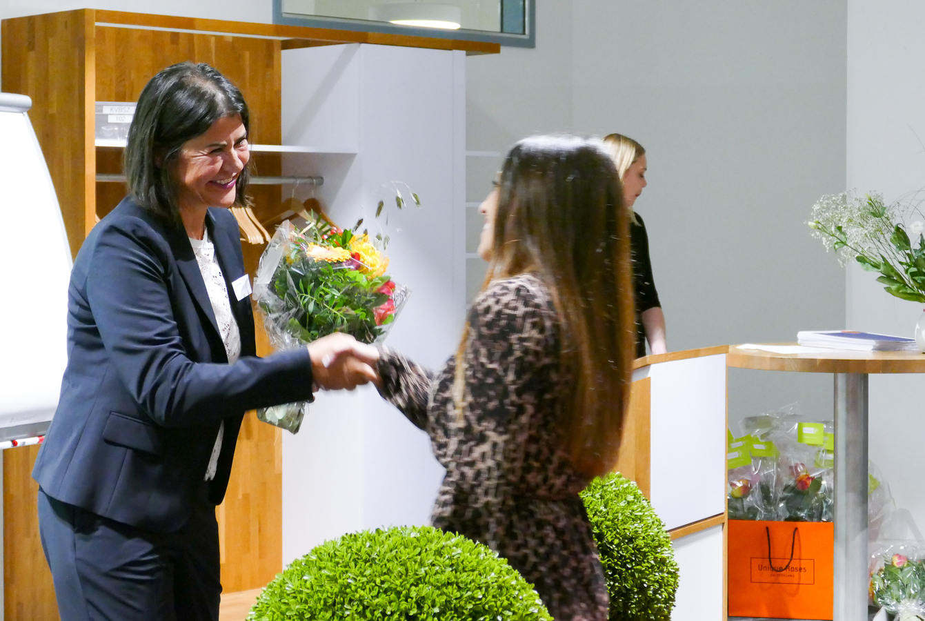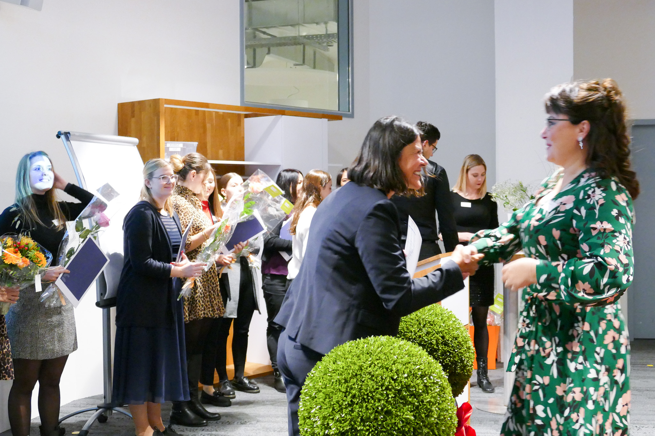 Im Anschluss durften alle ihr Zertifikat und eine Rose abholen und dann gemeinsam auf den Erfolg mit einem Glas Prosecco anstossen. Die Stimmung am Apéro war freudig und ausgelassen.