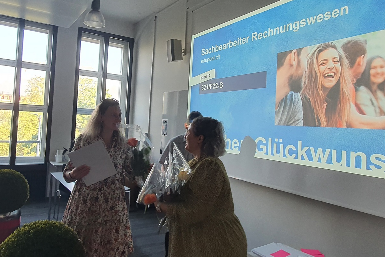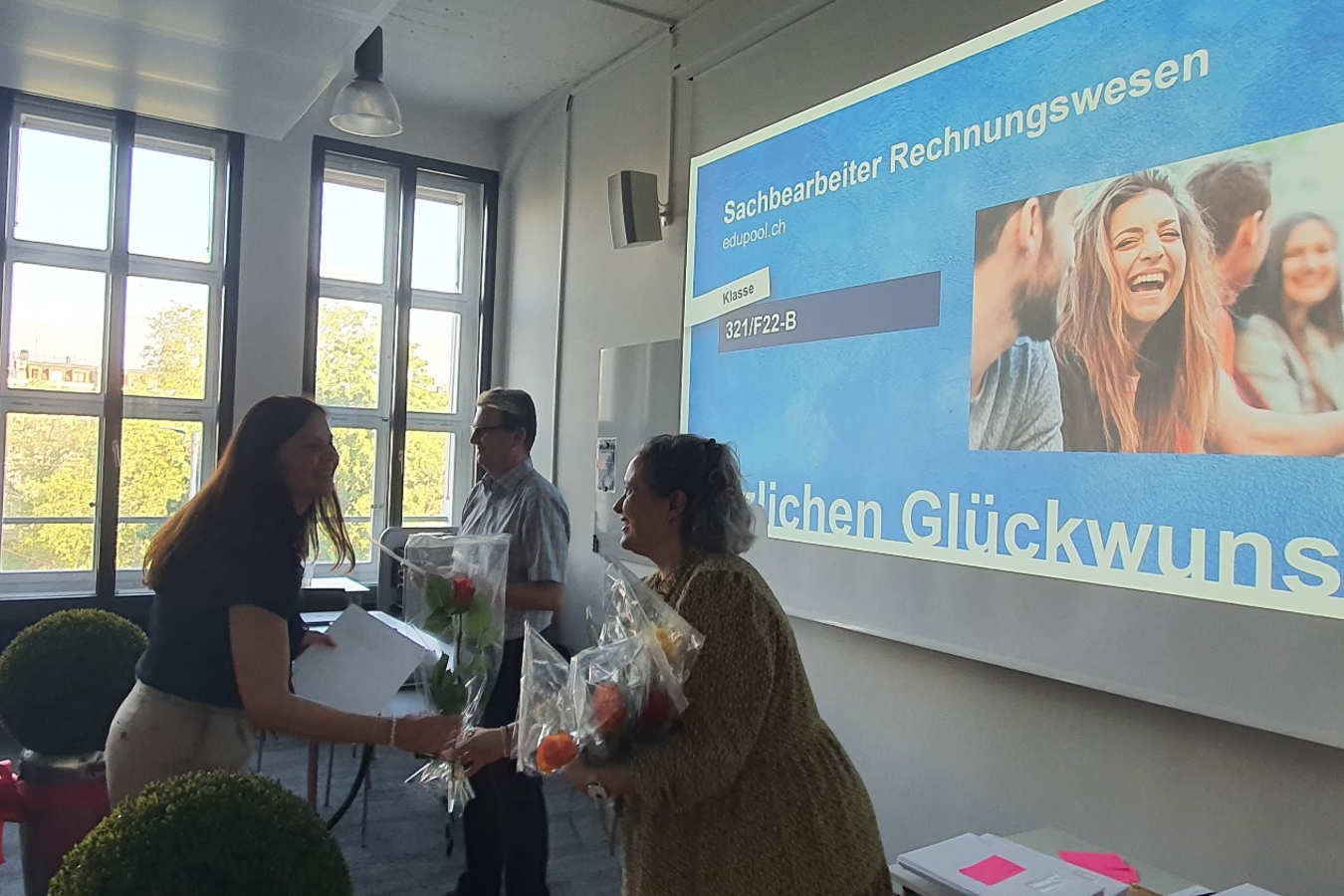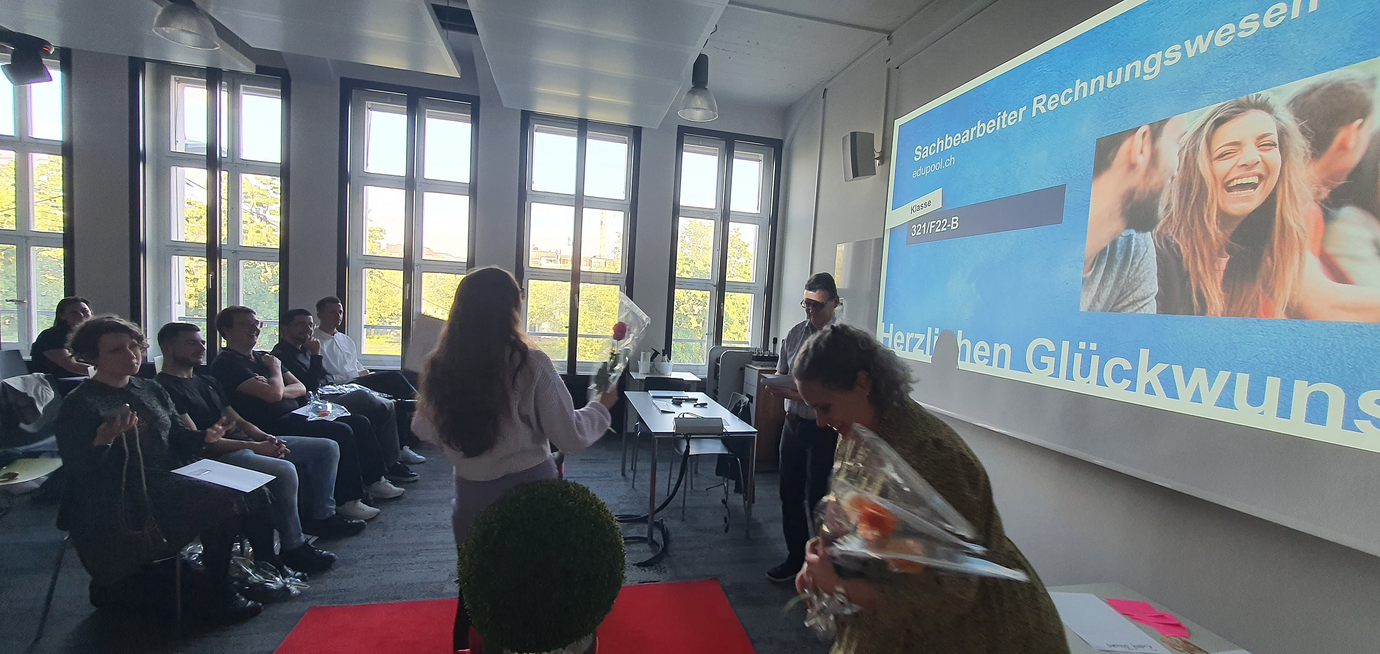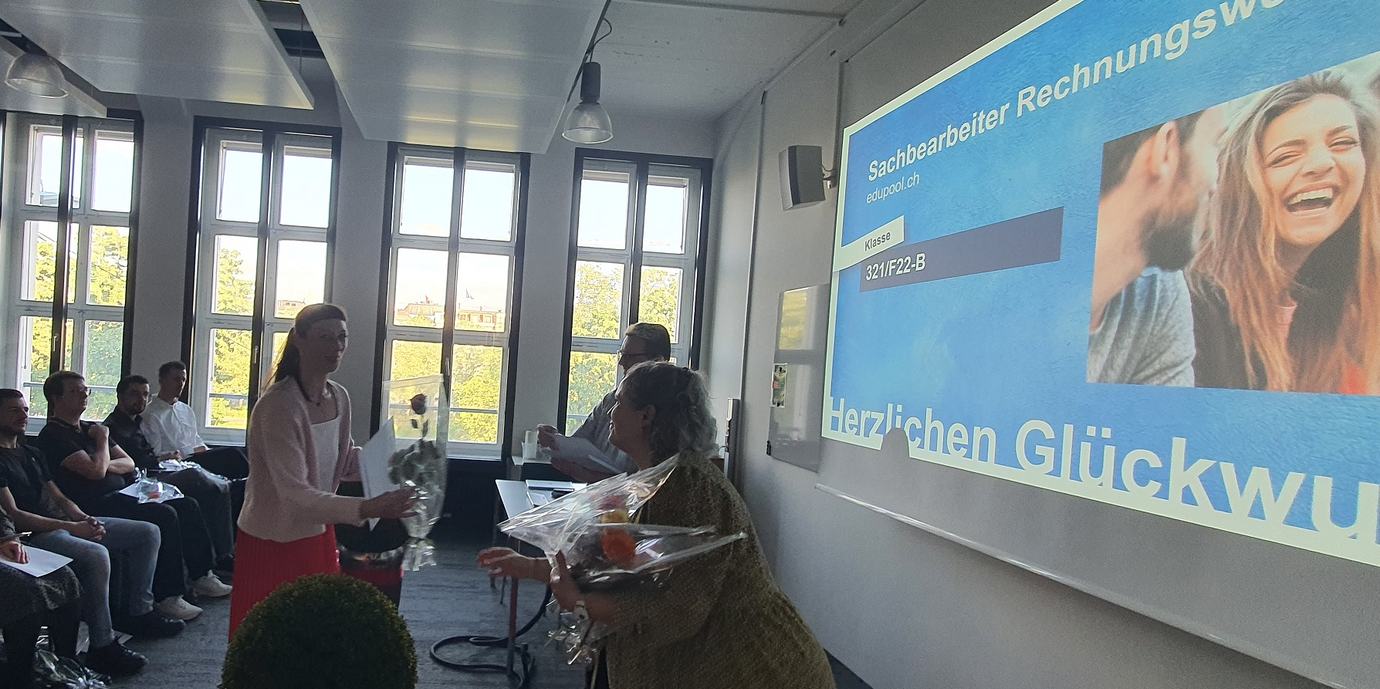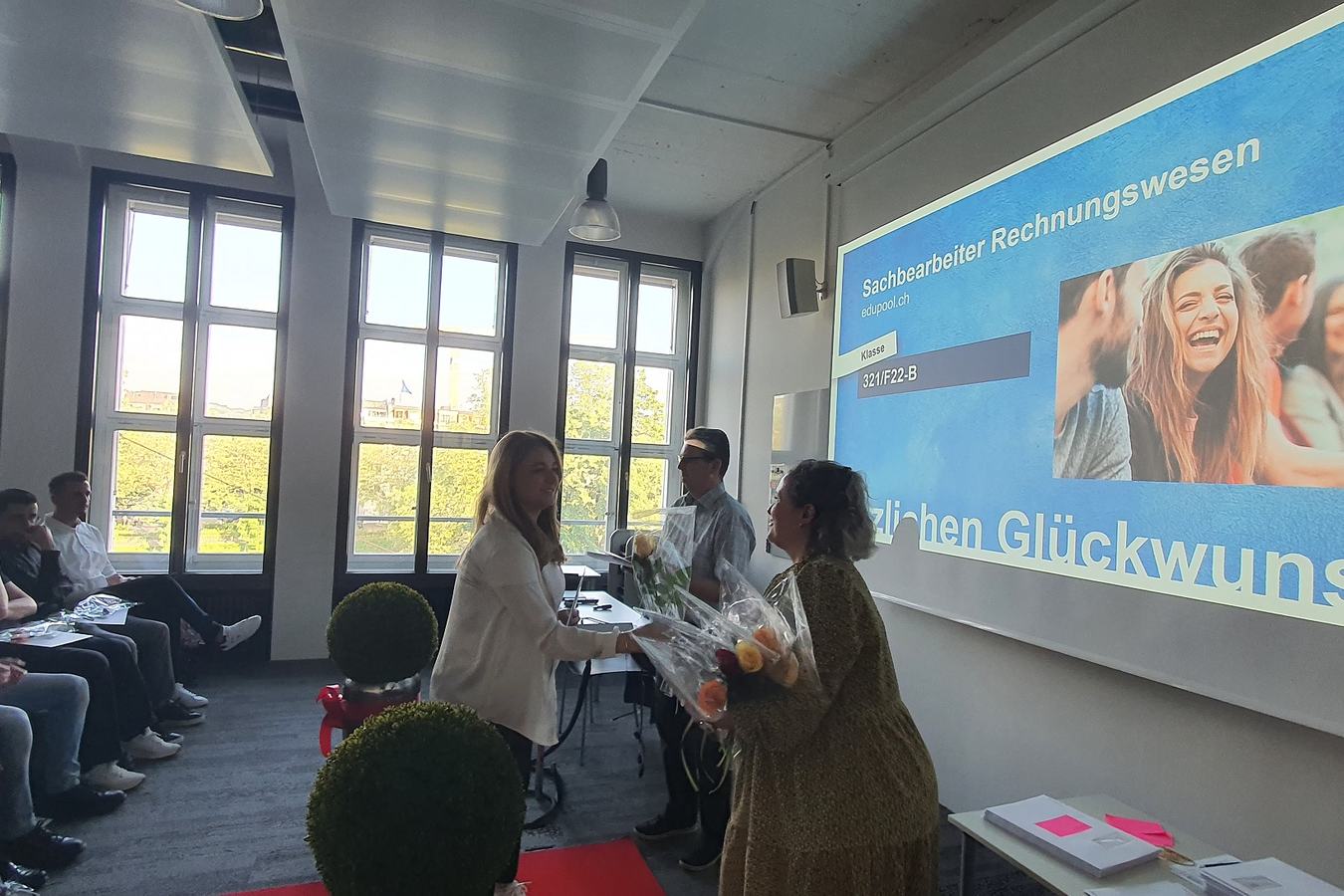 Die erfolgreichen Abschlüsse gehen weiter! Am letzten Freitag durften die Absolventinnen und Absolventen des Lehrgangs Sachbearbeiter/-in Rechnungswesen edupool.ch an der Abschlussfeier das Diplom entgegen nehmen. Auch bei diesem Lehrgang verzeichnen wir national wieder einen Erfolg: Rang 1 und 2 wurden mit der Note 6 durch 2 ehemalige Studierende von uns belegt.
