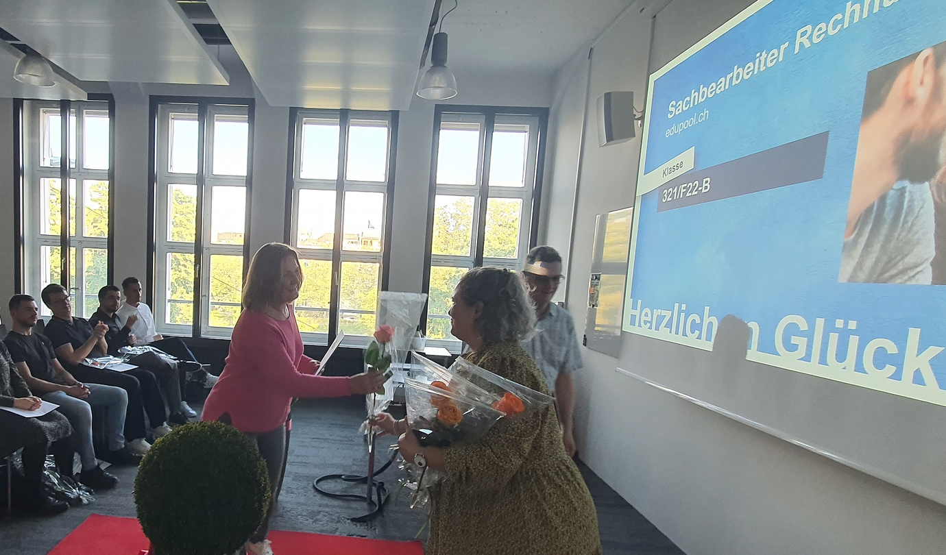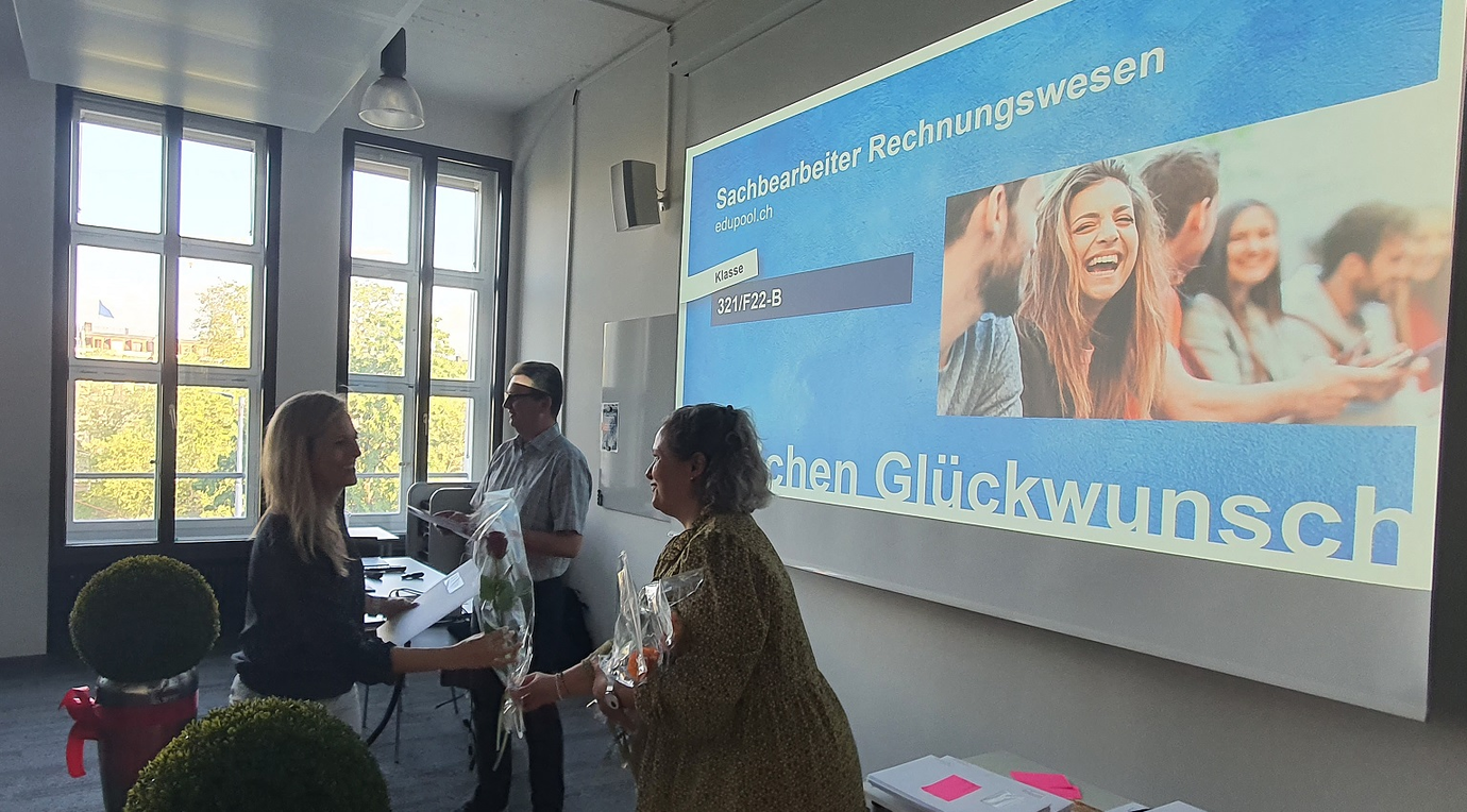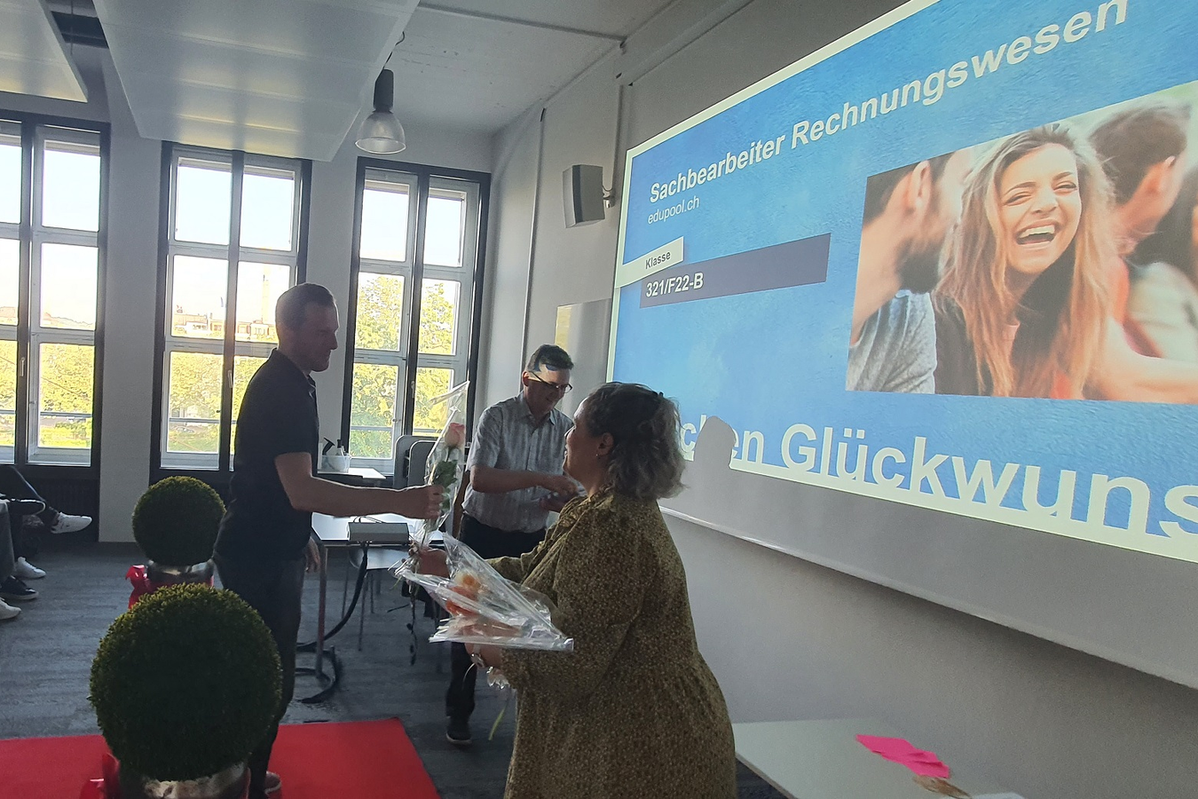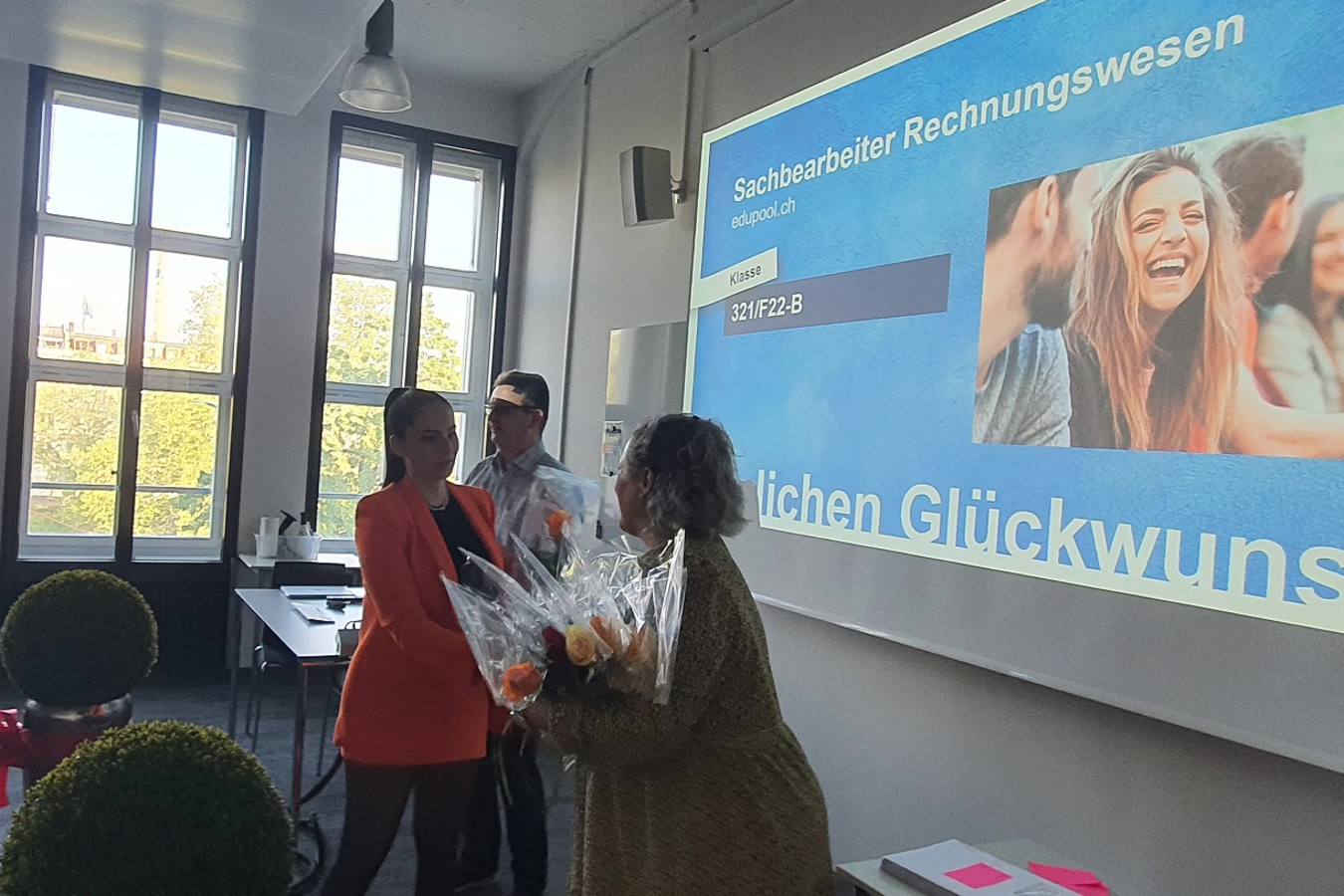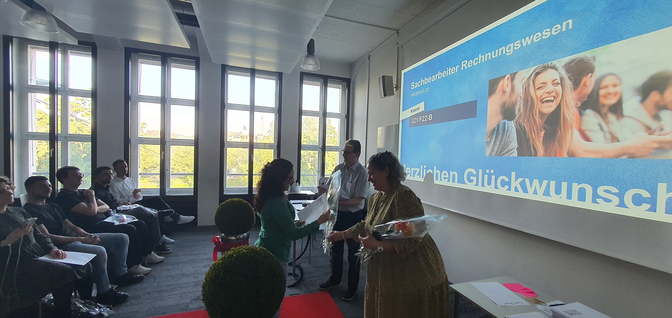 Die erfolgreichen Abschlüsse gehen weiter! Am letzten Freitag durften die Absolventinnen und Absolventen des Lehrgangs Sachbearbeiter/-in Rechnungswesen edupool.ch an der Abschlussfeier das Diplom entgegen nehmen. Auch bei diesem Lehrgang verzeichnen wir national wieder einen Erfolg: Rang 1 und 2 wurden mit der Note 6 durch 2 ehemalige Studierende von uns belegt.