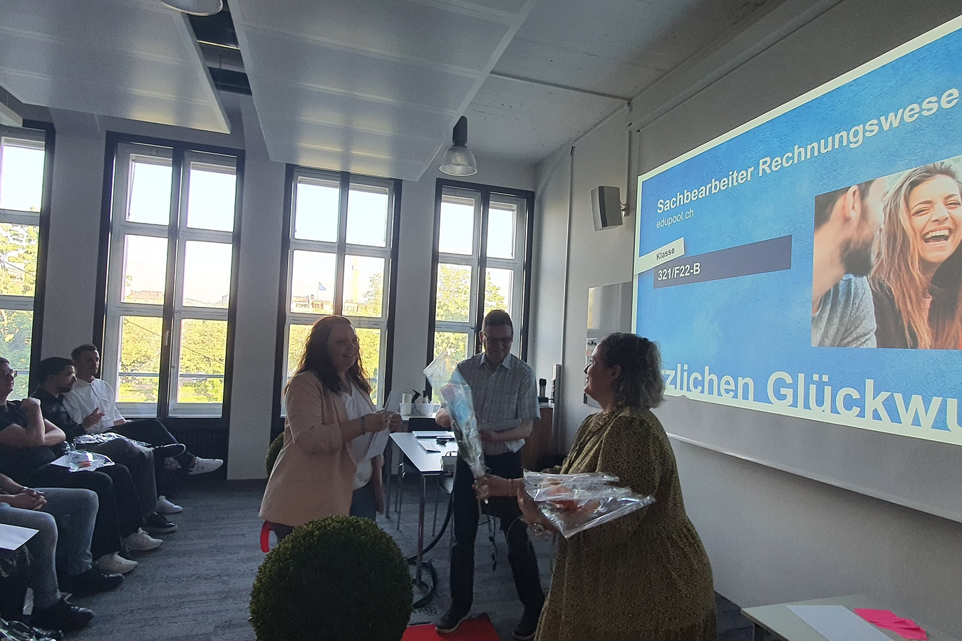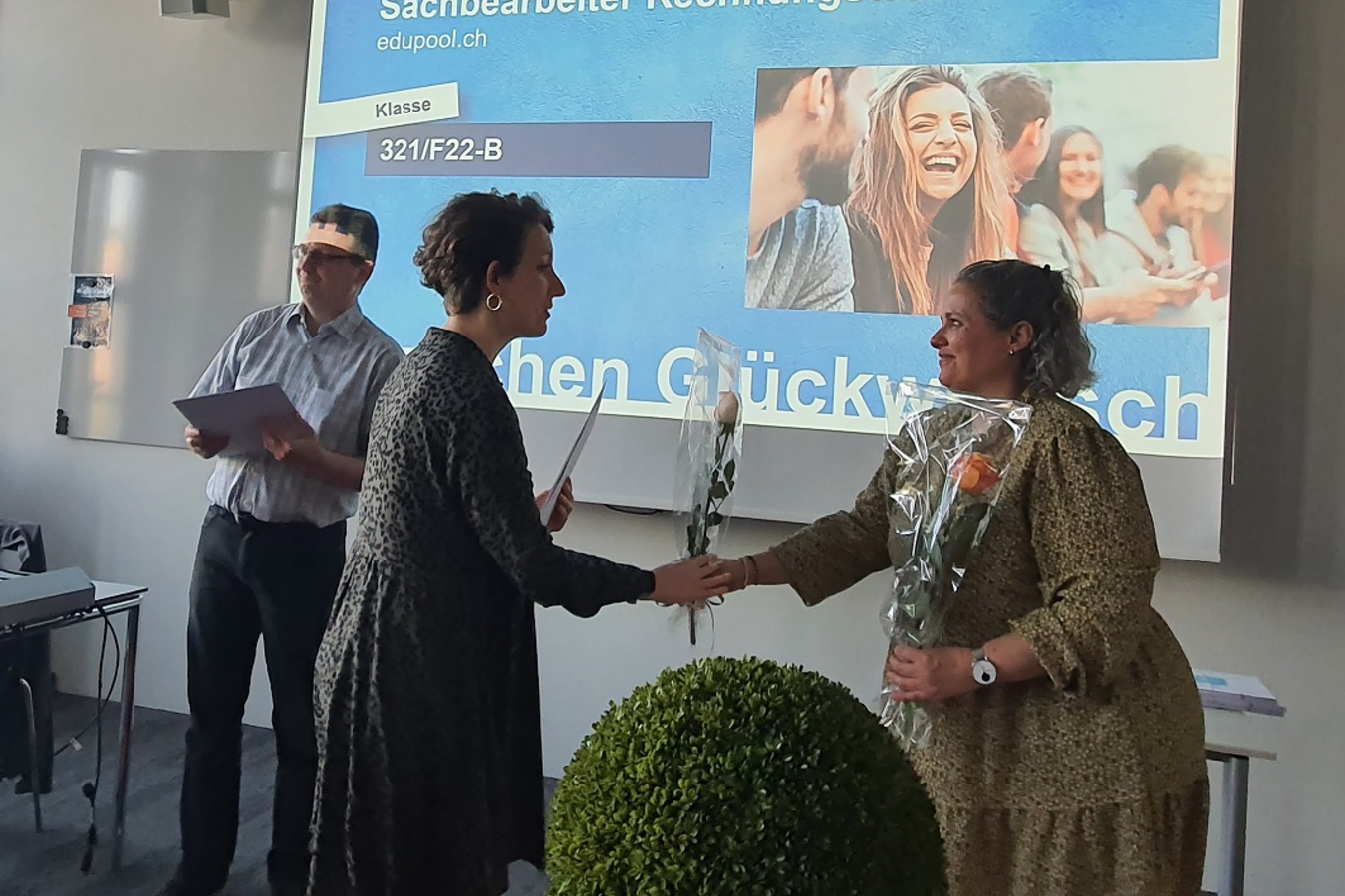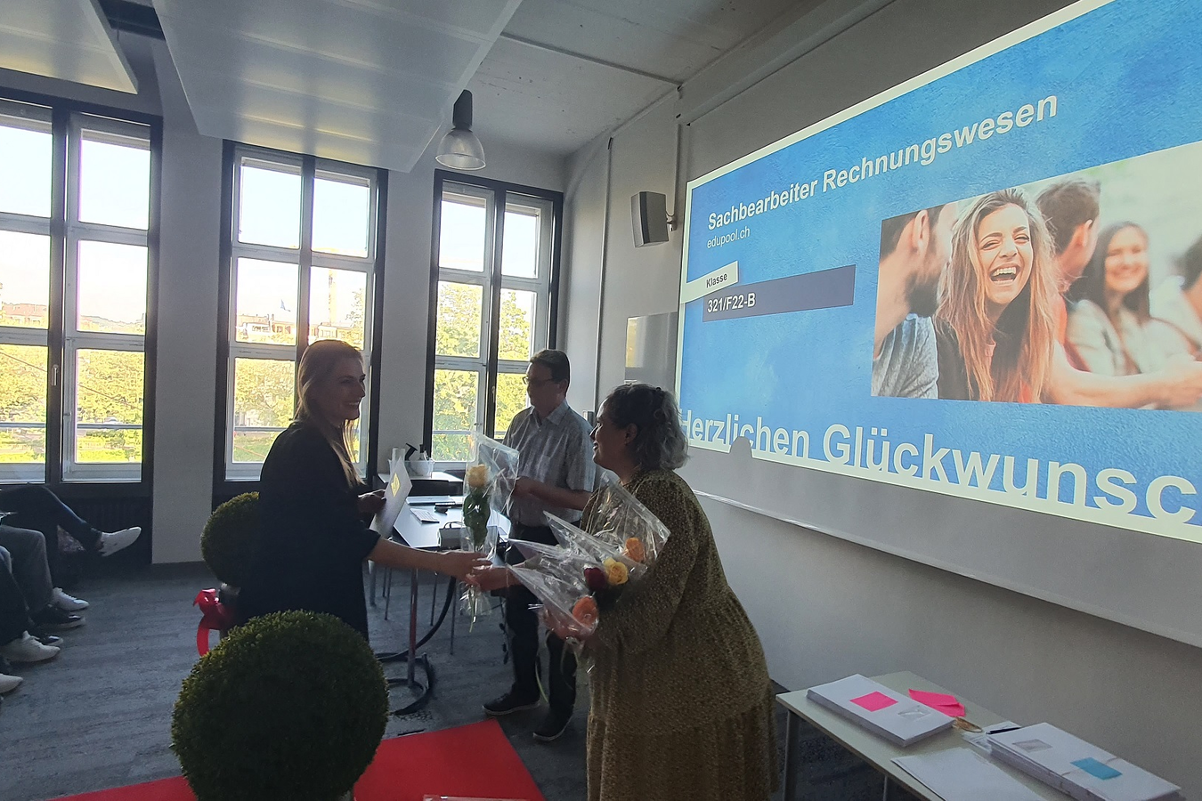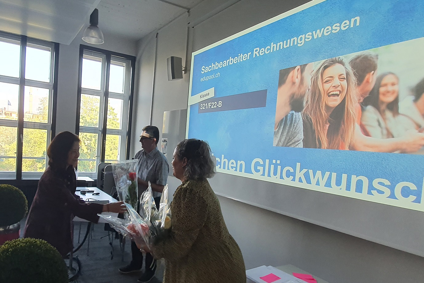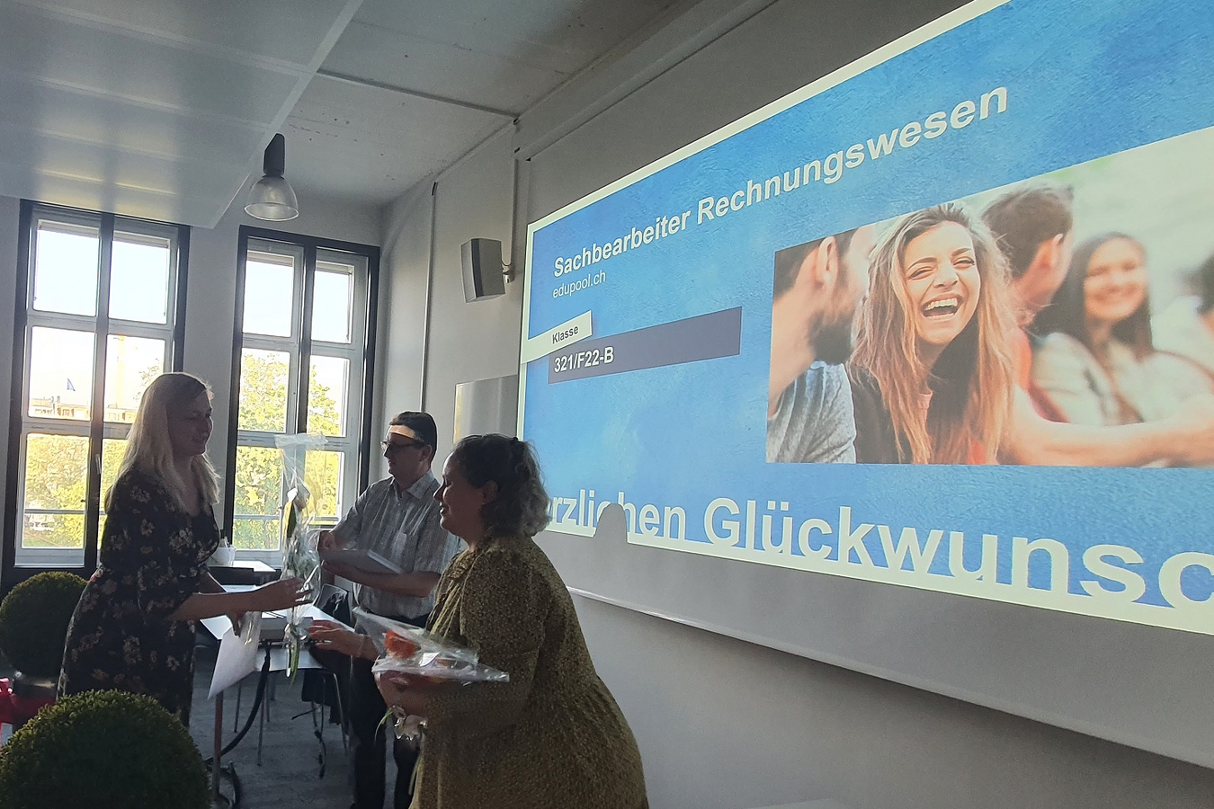 Die erfolgreichen Abschlüsse gehen weiter! Am letzten Freitag durften die Absolventinnen und Absolventen des Lehrgangs Sachbearbeiter/-in Rechnungswesen edupool.ch an der Abschlussfeier das Diplom entgegen nehmen. Auch bei diesem Lehrgang verzeichnen wir national wieder einen Erfolg: Rang 1 und 2 wurden mit der Note 6 durch 2 ehemalige Studierende von uns belegt.