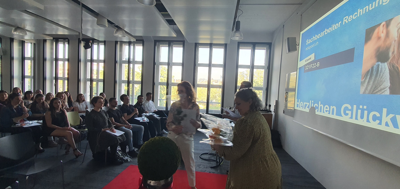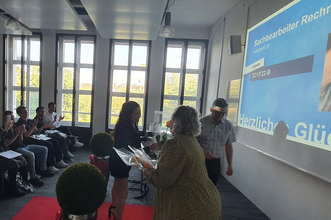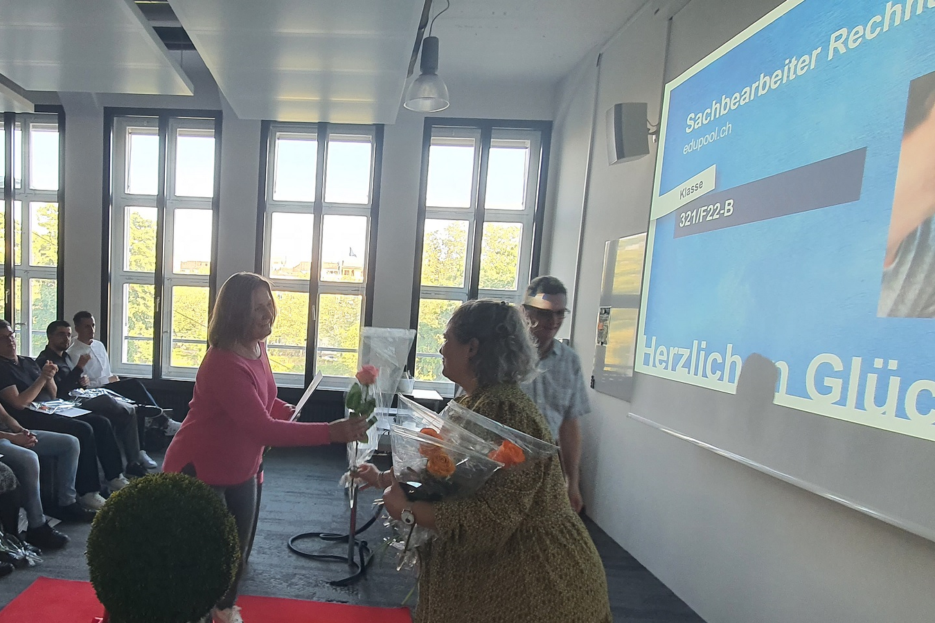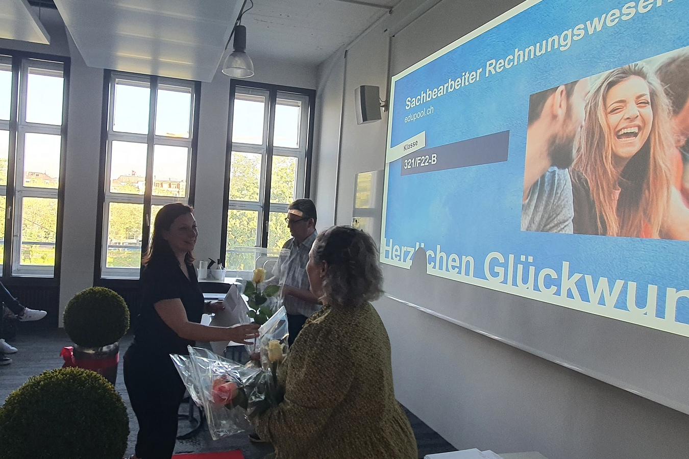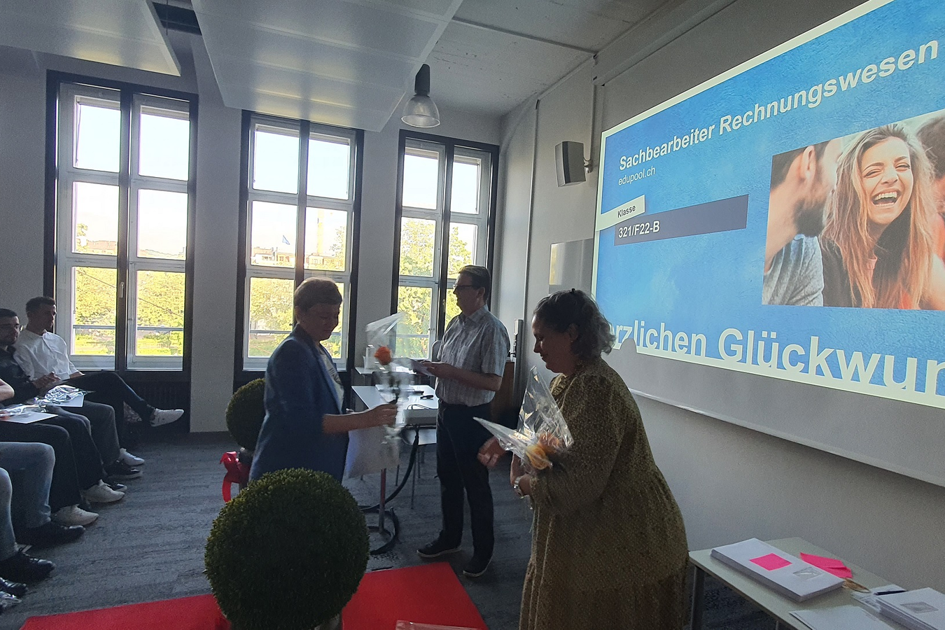 Die erfolgreichen Abschlüsse gehen weiter! Am letzten Freitag durften die Absolventinnen und Absolventen des Lehrgangs Sachbearbeiter/-in Rechnungswesen edupool.ch an der Abschlussfeier das Diplom entgegen nehmen. Auch bei diesem Lehrgang verzeichnen wir national wieder einen Erfolg: Rang 1 und 2 wurden mit der Note 6 durch 2 ehemalige Studierende von uns belegt.