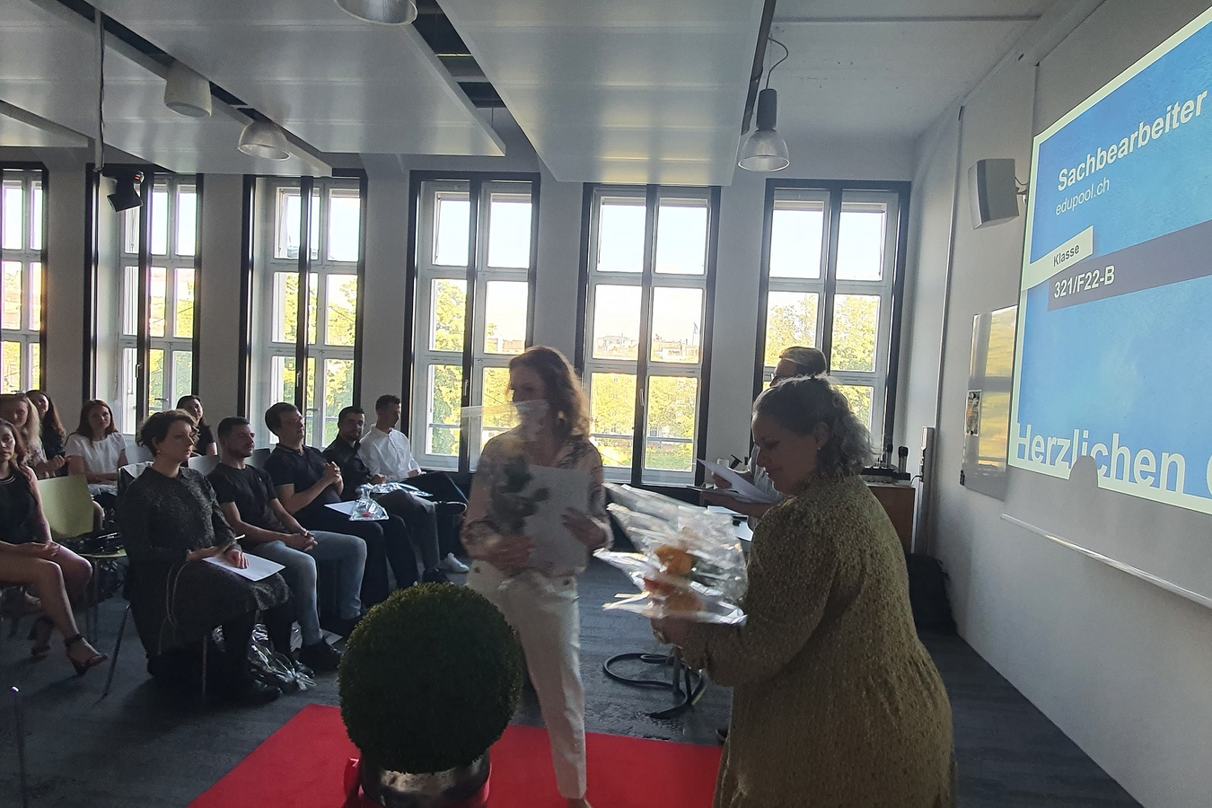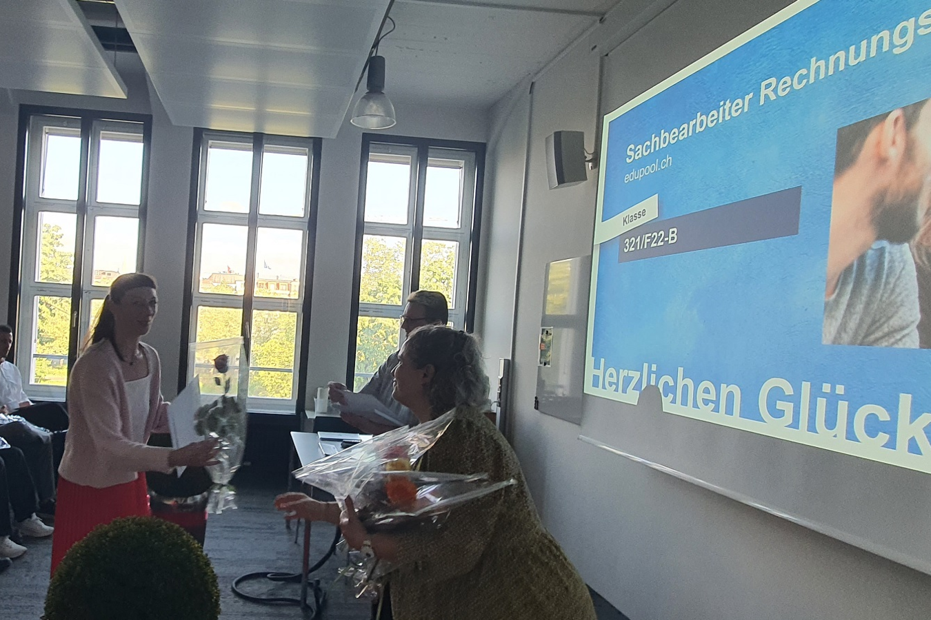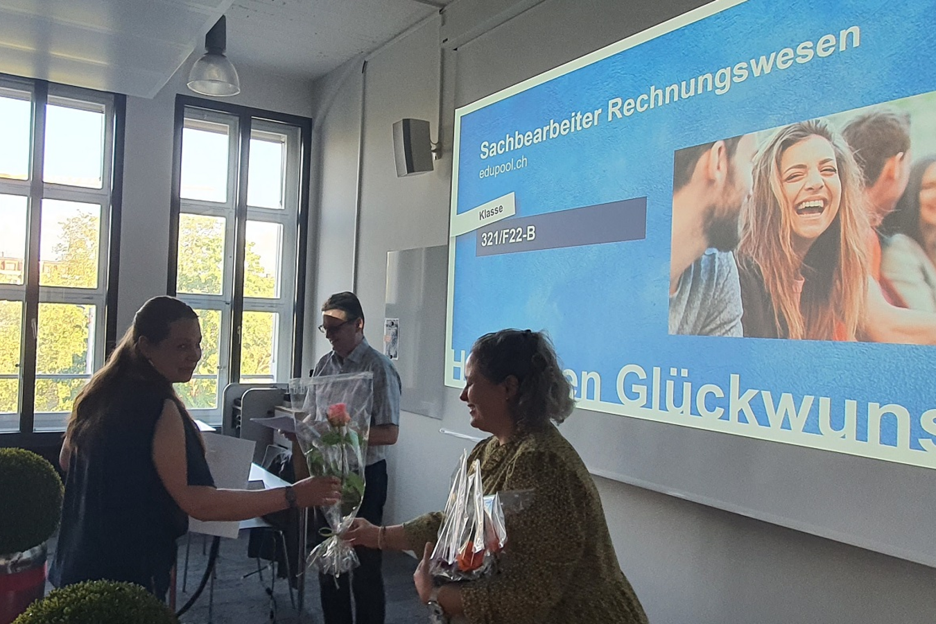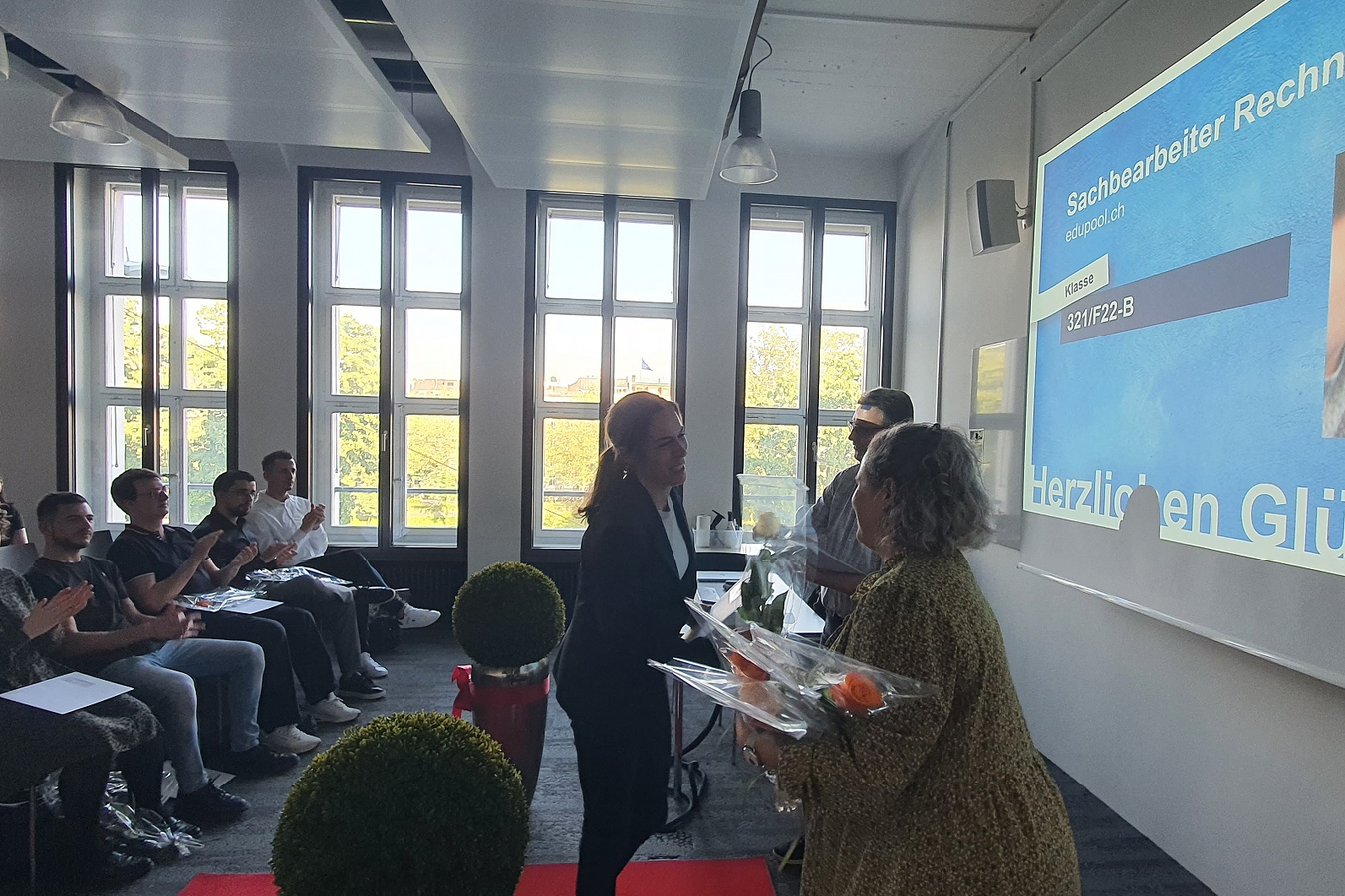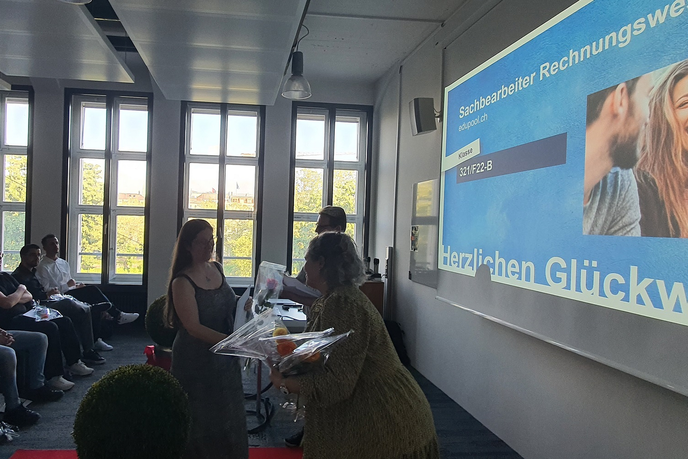 Die erfolgreichen Abschlüsse gehen weiter! Am letzten Freitag durften die Absolventinnen und Absolventen des Lehrgangs Sachbearbeiter/-in Rechnungswesen edupool.ch an der Abschlussfeier das Diplom entgegen nehmen. Auch bei diesem Lehrgang verzeichnen wir national wieder einen Erfolg: Rang 1 und 2 wurden mit der Note 6 durch 2 ehemalige Studierende von uns belegt.