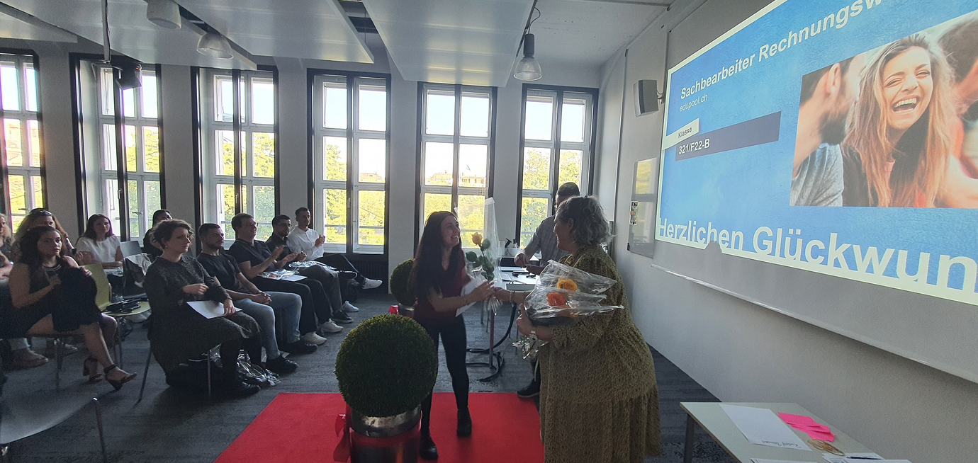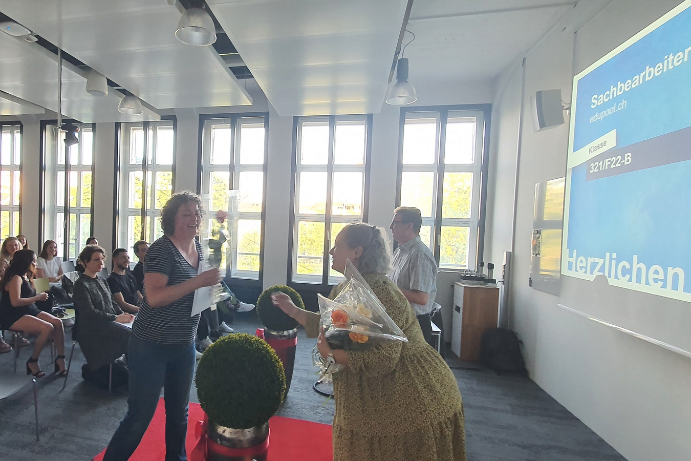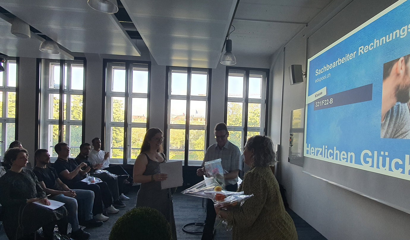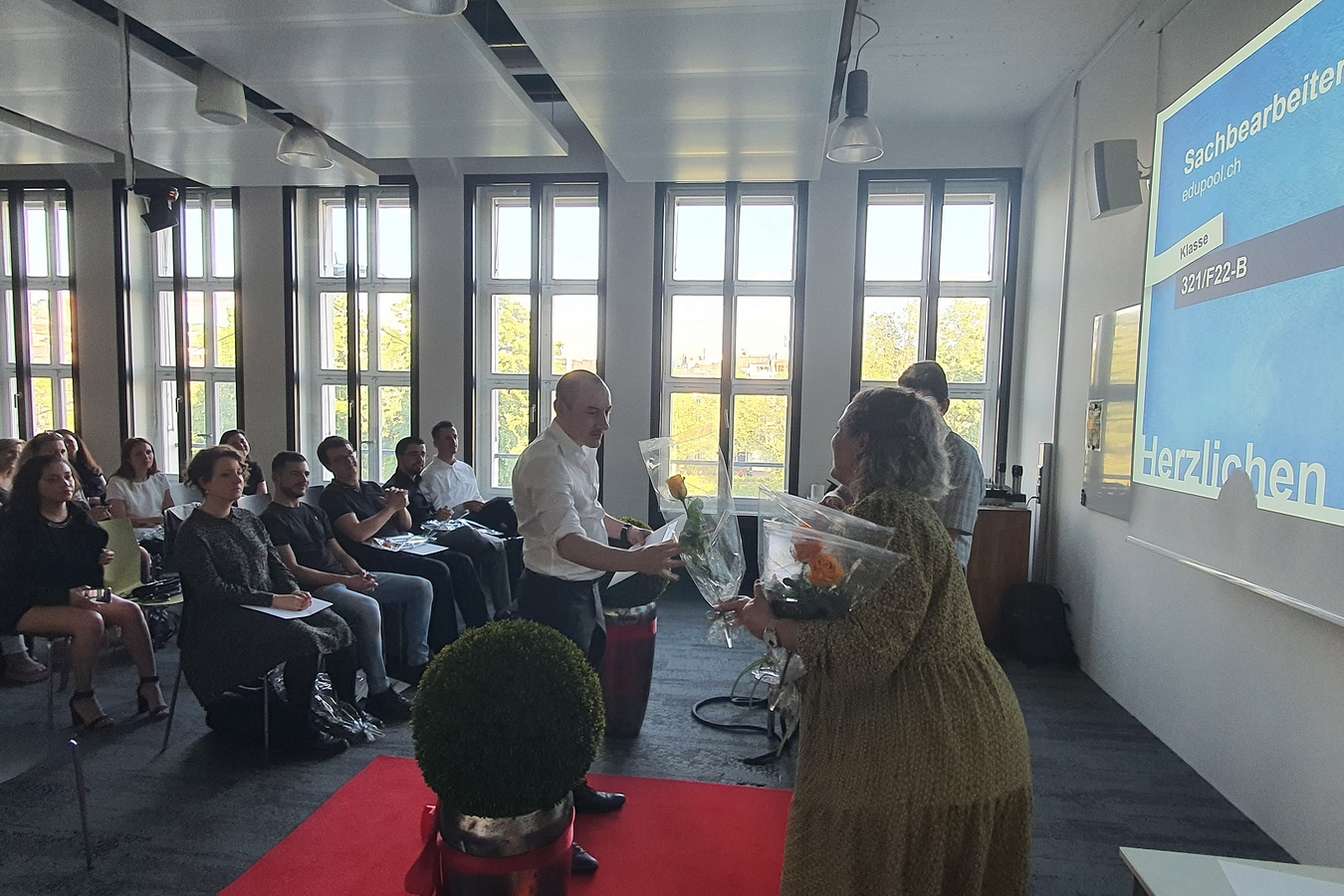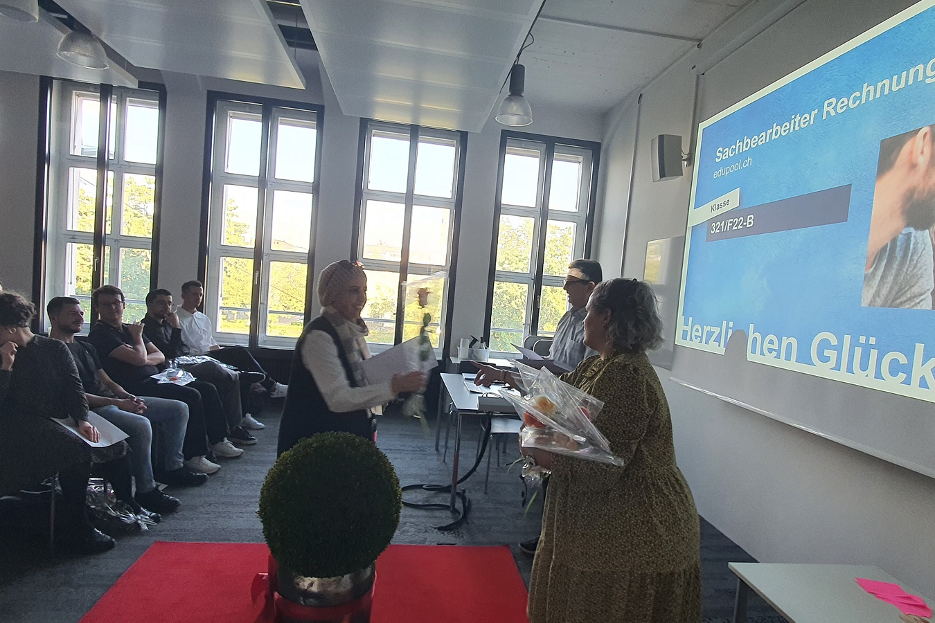 Die erfolgreichen Abschlüsse gehen weiter! Am letzten Freitag durften die Absolventinnen und Absolventen des Lehrgangs Sachbearbeiter/-in Rechnungswesen edupool.ch an der Abschlussfeier das Diplom entgegen nehmen. Auch bei diesem Lehrgang verzeichnen wir national wieder einen Erfolg: Rang 1 und 2 wurden mit der Note 6 durch 2 ehemalige Studierende von uns belegt.